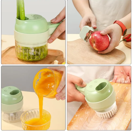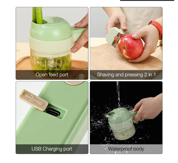 ¡Revoluciona tu cocina con nuestro Picador de Alimentos 4 en 1, ahora recargable y de mano, con un extra: ¡un pelador de papas incluido!
